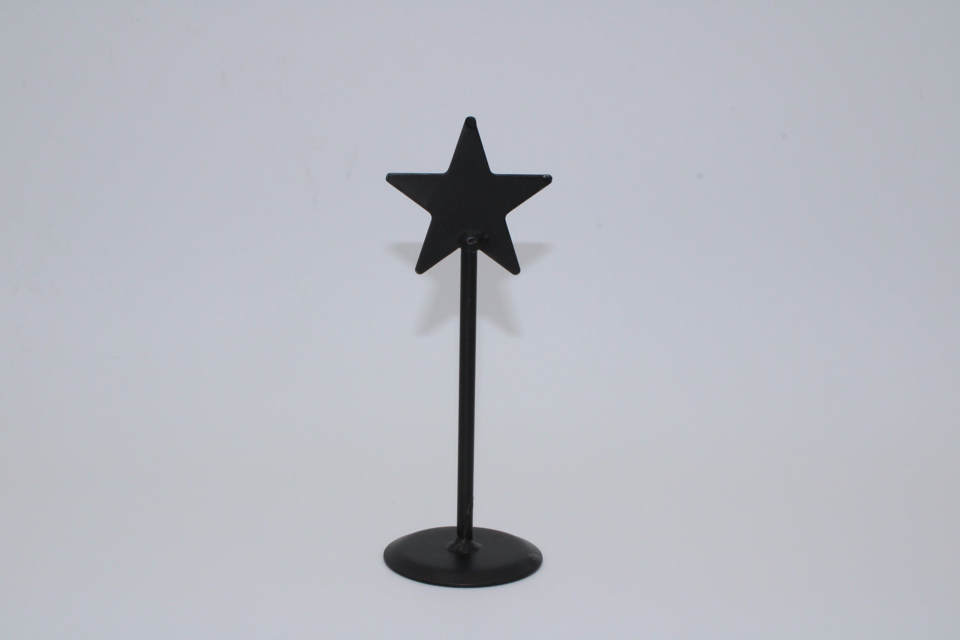 A simple iron star that stands on its own base, handcrafted in Lancaster, PA, for a touch of rustic Americana. The petite size makes it a versatile decor accent for shelves, desks, or mantels, adding a subtle, primitive rustic charm to any space. Each star is uniquely made, carrying a piece of local artisan tradition.