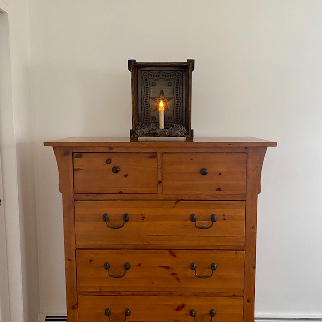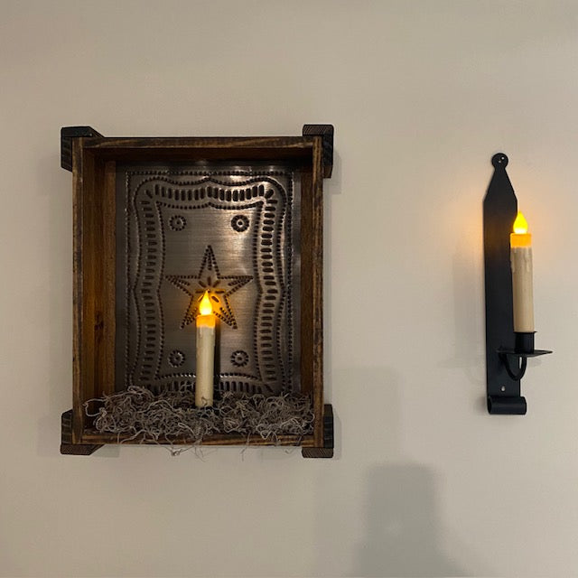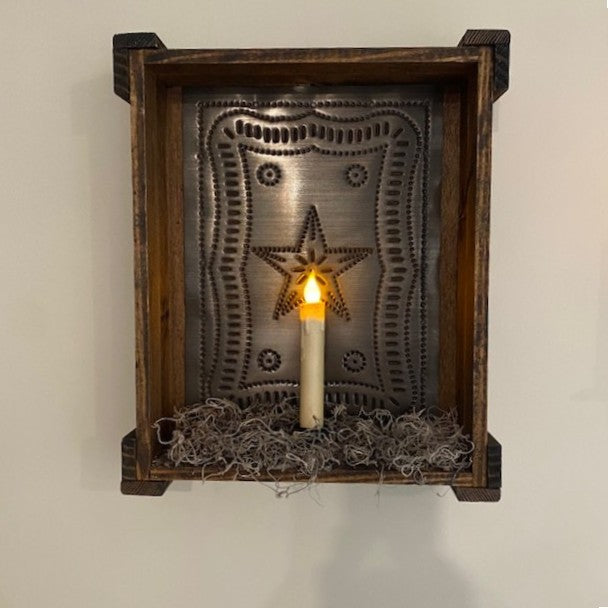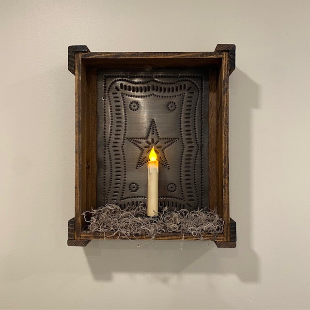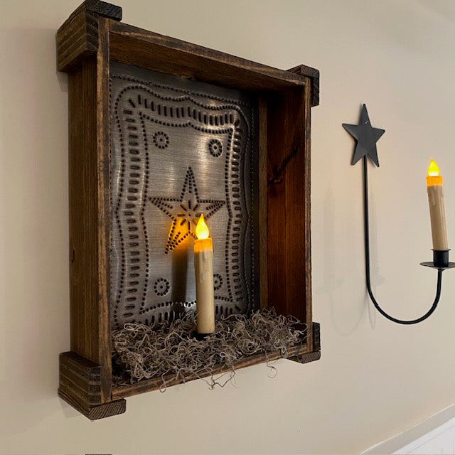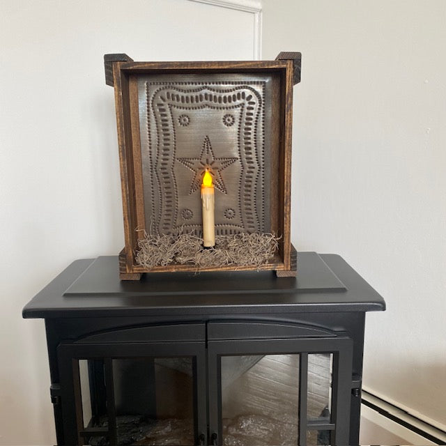 Rustic Aesthetic: Features the classic look of Federal punched tin paired with wood, perfect for primitive, farmhouse, cabin, cottage, or country decor styles.